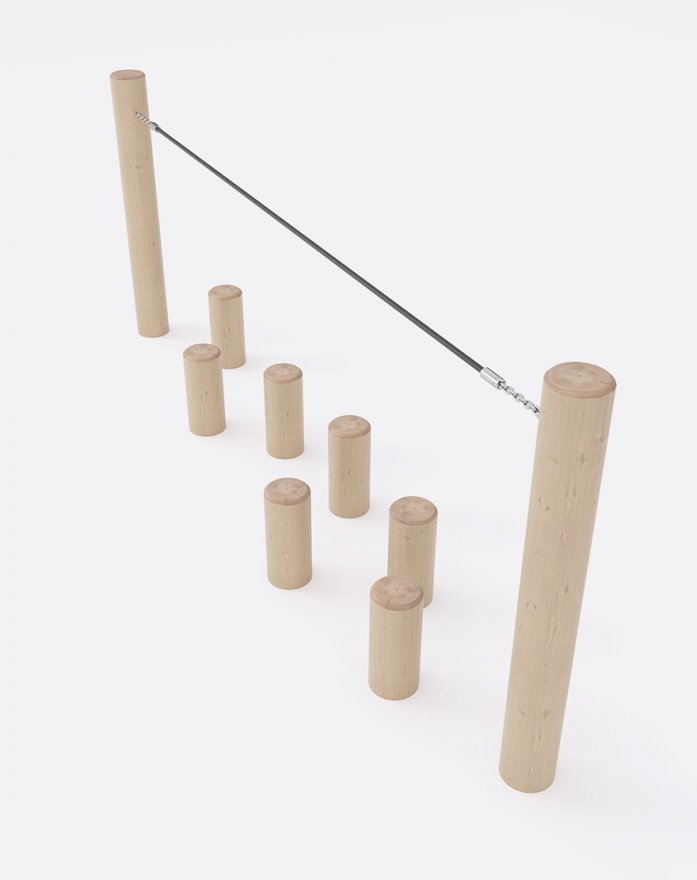 Состоит из опорных столбов, канатной стропы и пеньков.