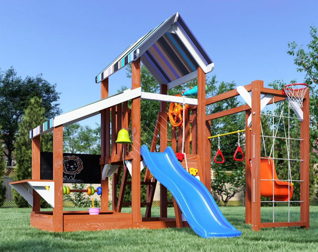 Площадка Борге 13 обладает довольно широким функционалом (который по желанию можно легко расширить). Детская площадка предназначена для дачи, коттеджа.
