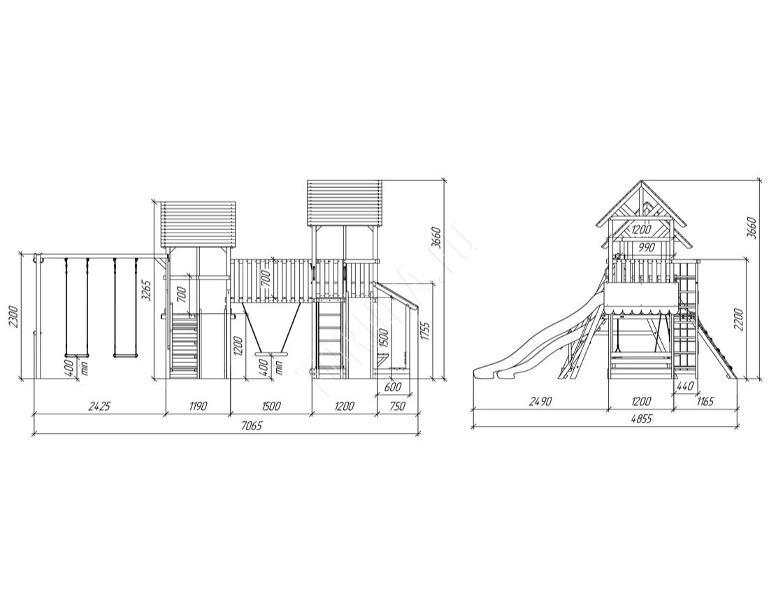 Конструкция выполнена из надёжного клееного бруса, соответствующего стандартам безопасности. Все металлические соединения закрыты пластиковыми заглушками, что делает площадку максимально безопасной для малышей.