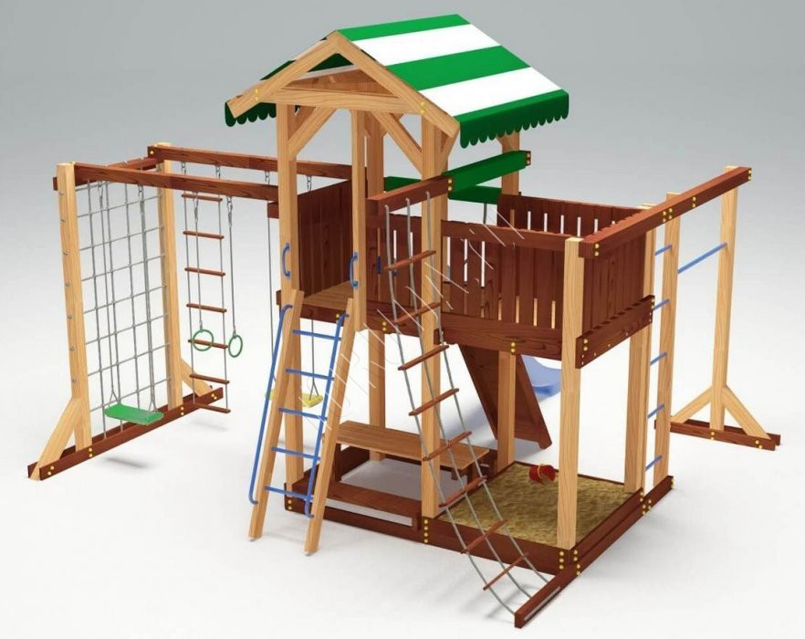 Площадка Парус 6 обладает довольно широким функционалом (который по желанию можно легко расширить). Детская площадка предназначена для дачи, коттеджа.
