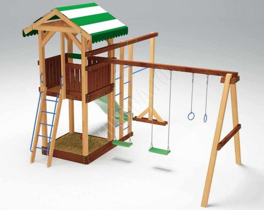 Площадка Парус 2 обладает довольно широким функционалом (который по желанию можно легко расширить). Детская площадка предназначена для дачи, коттеджа.