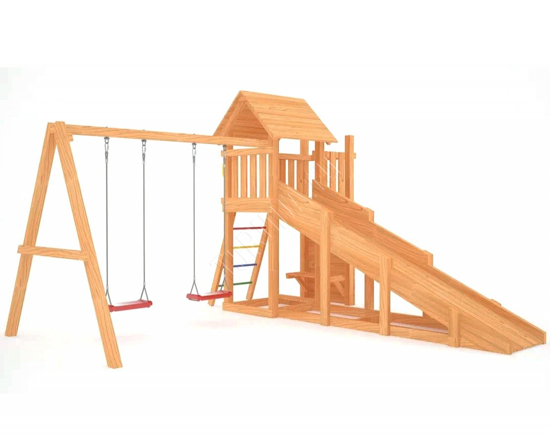 Детская игровая площадка всепогодная, её не нужно разбирать под зиму, и снова собирать весной.